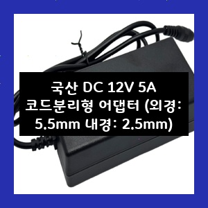 국산 DC 12V 5A 코드분리형 어댑터 (외경: 5.5mm 내경: 2.5mm)